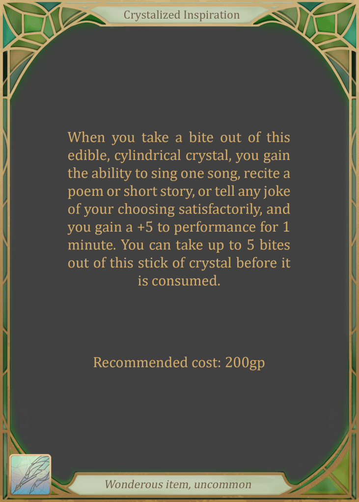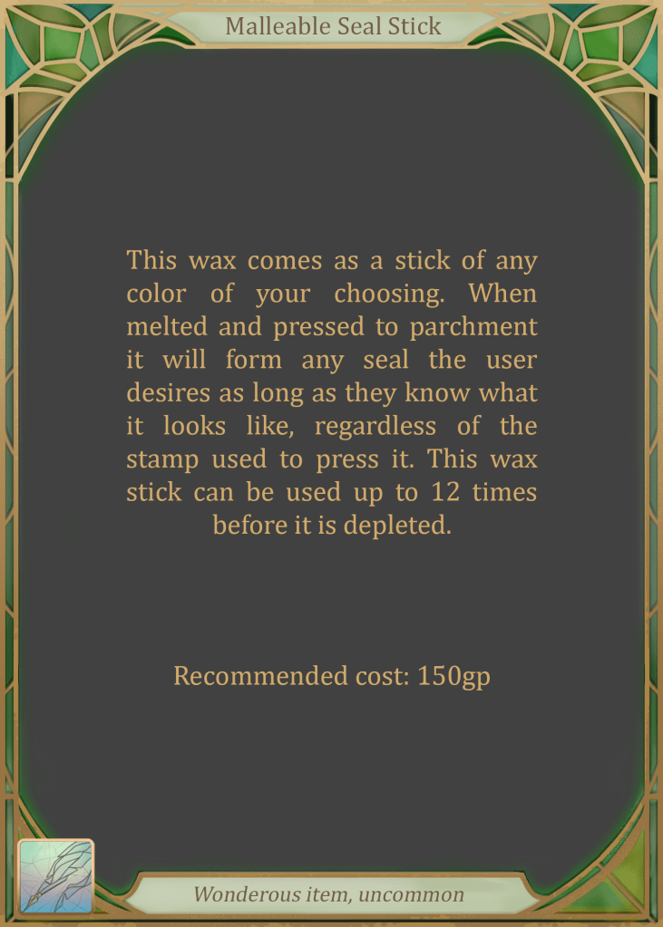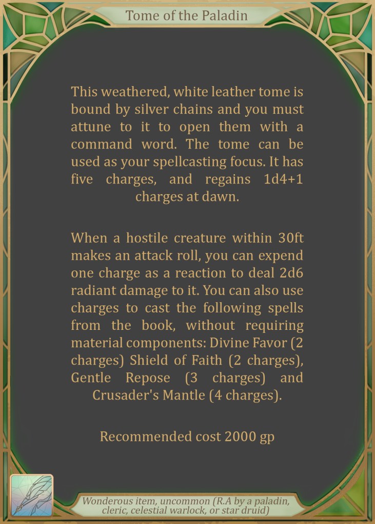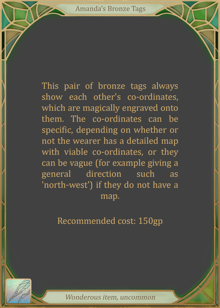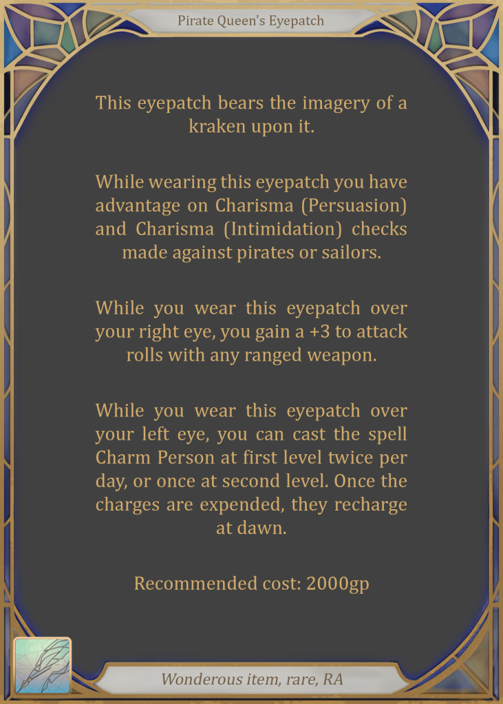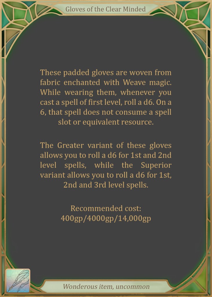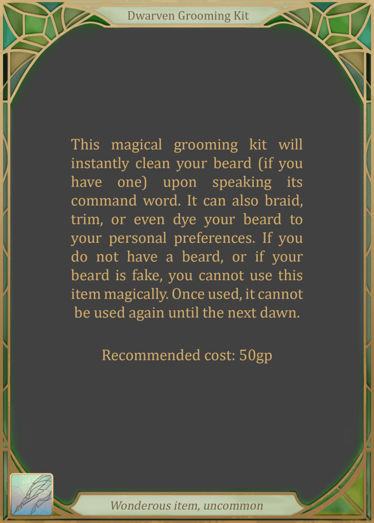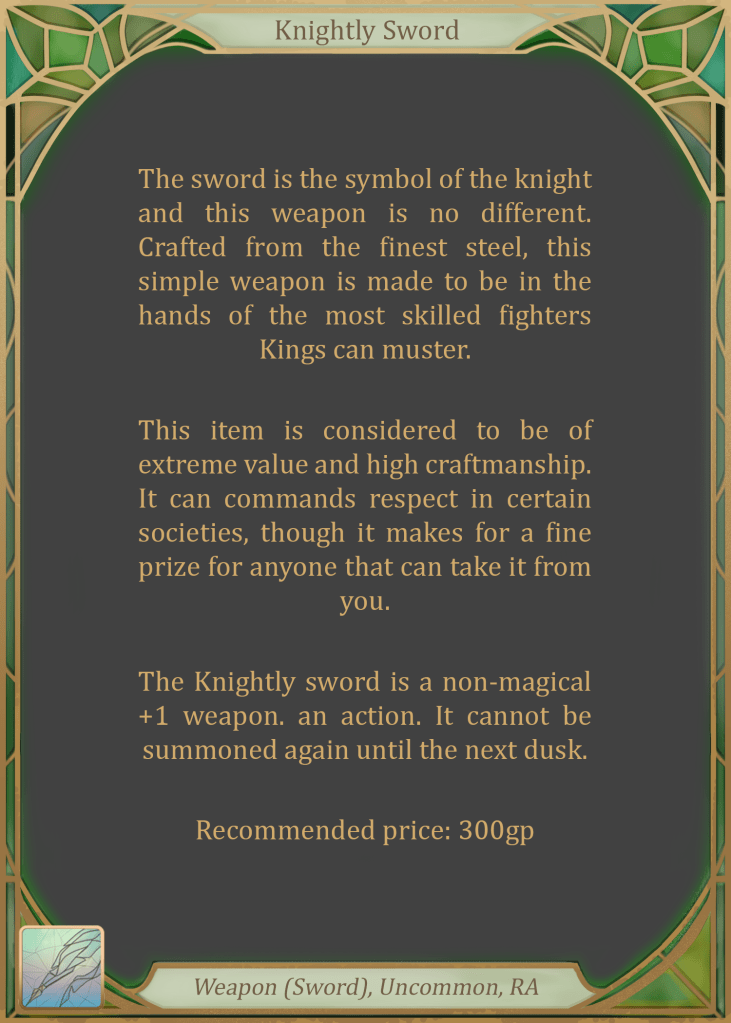 In the year 2022 I got together with a good friend of mine and we decided to spend a couple of weeks creating item cards intended to be compatible with Dungeons and Dragons 5e. The ever wonderful artist and dear friend @shanwichartist was commissioned for the art and design. At the beginning of 2023 the OGL scandal rocked the TTRPG space. Due to concerns that our continued production of these cards would lead to legal issues we decided to cut things short. As we now do not seek to profit from them it seems a shame to keep them from the public. Please enjoy these free items as you wish.